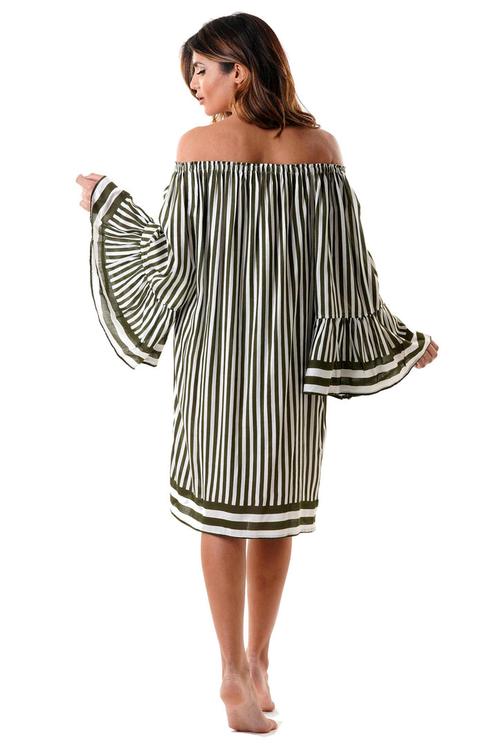 Dieses gestreifte Kleid hat einen Bootsausschnitt und Voile-Ärmel für einen eleganten und raffinierten Look. Das gestreifte Muster betont die Silhouette und verleiht einen Hauch von Stil. Perfekt für besondere Abende oder für einen makellosen Bürolook.