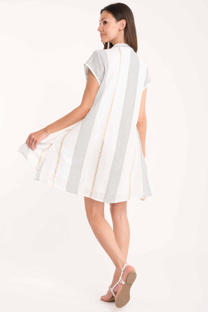 Das Hemdkleid Amara aus reinem Baumwollstoff hat einen klassischen und vielseitigen Schnitt, der sich für viele Gelegenheiten eignet, während die seitlichen Schlitze Bewegungsfreiheit und eine raffinierte Eleganz garantieren. Der Baumwollstoff sorgt für Atmungsaktivität und Komfort und bewahrt ein makelloses Aussehen. Ein unverzichtbares Kleidungsstück, das Praktikabilität und Stil ohne Kompromisse verbindet.