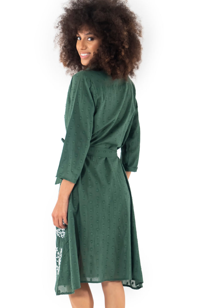 Hergestellt aus reinem Baumwolle, präsentiert dieses lange Hemdkleid einen eleganten Kragen und Knöpfe auf der Vorderseite. Dank des verstellbaren Gürtels in leben und den ¾-Ärmeln bietet es maximalen Komfort. Mit einer wunderschönen Blumenstickerei am Saum ist dieses Kleid perfekt für einen raffinierten und femininen Look.