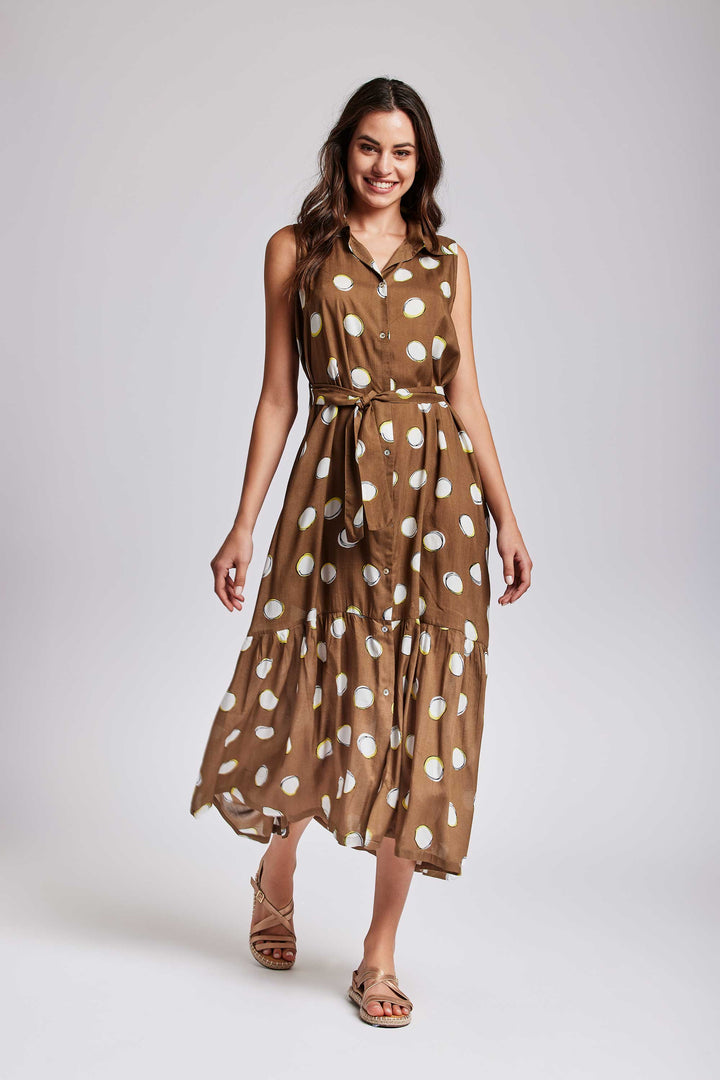 ÄRMELLOSES HEMDKLEID MIT PUNKTEMUSTER