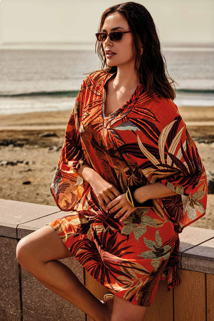 L'abito Edera in viscosa con maniche a pipistrello è perfetto per giornate calde e vacanze. Il suo design rilassato e leggero offre comfort e freschezza. Ideale anche per le vacanze grazie alla sua lunghezza midi e il suo ampio design. Un must-have per l'estate!