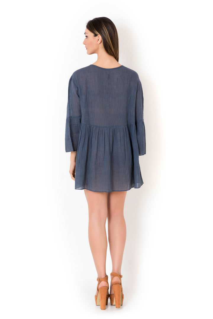 Dieses elegante Kleid, aus reinem Baumwollstoff gefertigt, bietet natürliche Atmungsaktivität und Komfort. Der zart bestickte V-Ausschnitt fügt ein raffiniertes Detail hinzu, das das anspruchsvolle Design des Kleidungsstücks unterstreicht. Ideal für alle, die eine Kombination aus hochwertigem Stoff und dezentem Stil suchen.