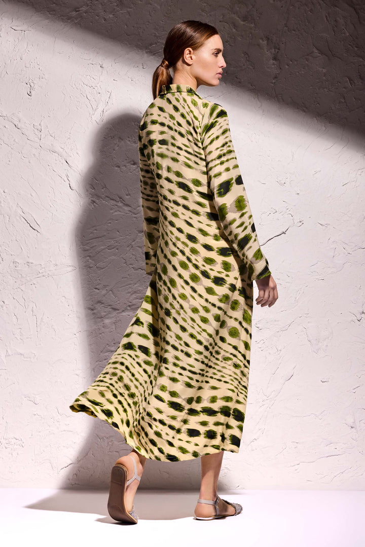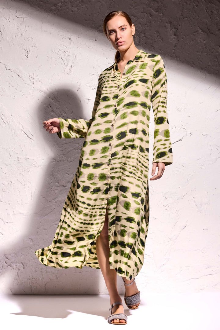 Kleides Kleid mit Hemdkragen und verstellbaren 3/4-Ärmeln. L vordere Knopfleiste verleiht einen Hauch von Eleganz, während das vielseitige Modell sich für verschiedene Anlässe eignet. Perfekt für einen eleganten und bequemen Look.