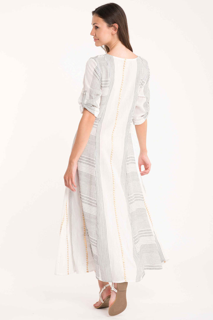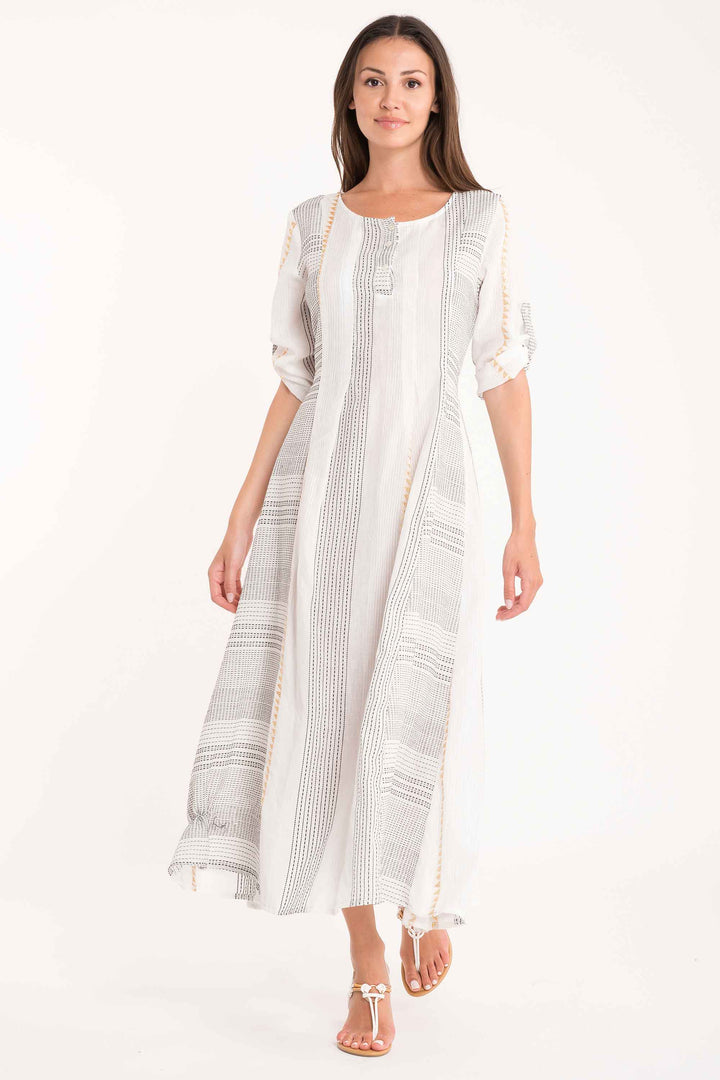 Das lange Kleid Amara aus reinem Baumwollstoff passt perfekt zu verschiedenen Anlässen, vom Strandspaziergang bis zu informellen Veranstaltungen. Die reine Baumwolle sorgt für Langlebigkeit und einfache Pflege, wobei Form und Farbe auch nach zahlreichen Wäschen erhalten bleiben. Ein vielseitiges und elegantes Kleidungsstück für Ihre Sommergarderobe.