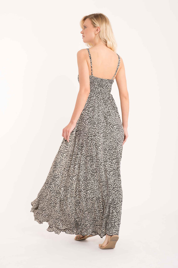 Dieses lange Kleid mit faszinierender animalier fantasie hat strukturierte schulterpolster, die eine elegante und definierte Silhouette garantieren, perfekt, um die Schultern zu betonen. Ein vielseitiges Kleidungsstück, das Raffinesse und Charakter vereint, ideal für besondere Anlässe oder für diejenigen, die einen raffinierten Look mit einem Hauch von Persönlichkeit wünschen. Die Länge sorgt für eine zeitlose Ausstrahlung, geeignet für verschiedene Kontexte und Jahreszeiten.