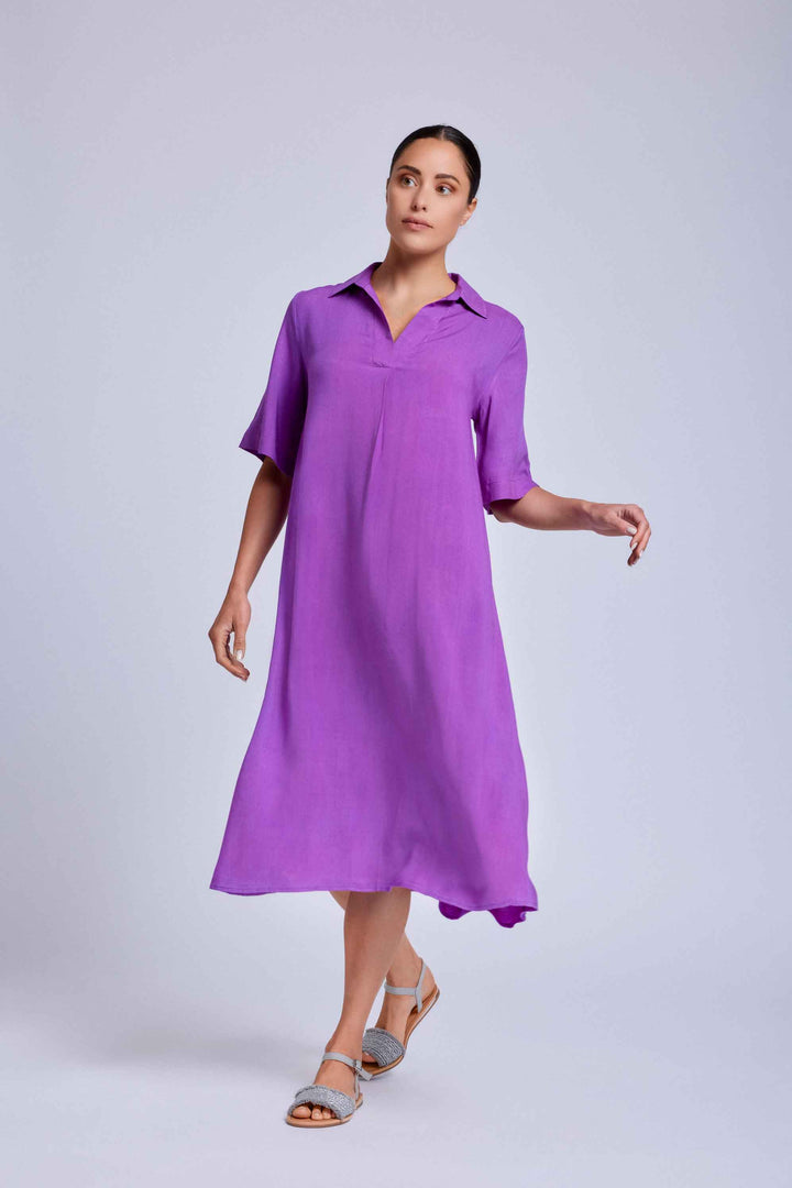 Entdecken Sie Ihr neues Asia-Langkleid, perfekt für einen schicken und bequemen Look! Dank seines großen und luftigen Designs garantiert es Ihnen Bewegungsfreiheit. Mit seinem Kragen und den kurzen Ärmeln wirken Sie bei jedem Anlass elegant und frisch. Das lange Modell und die A-Linie schmeicheln Ihrer Figur.