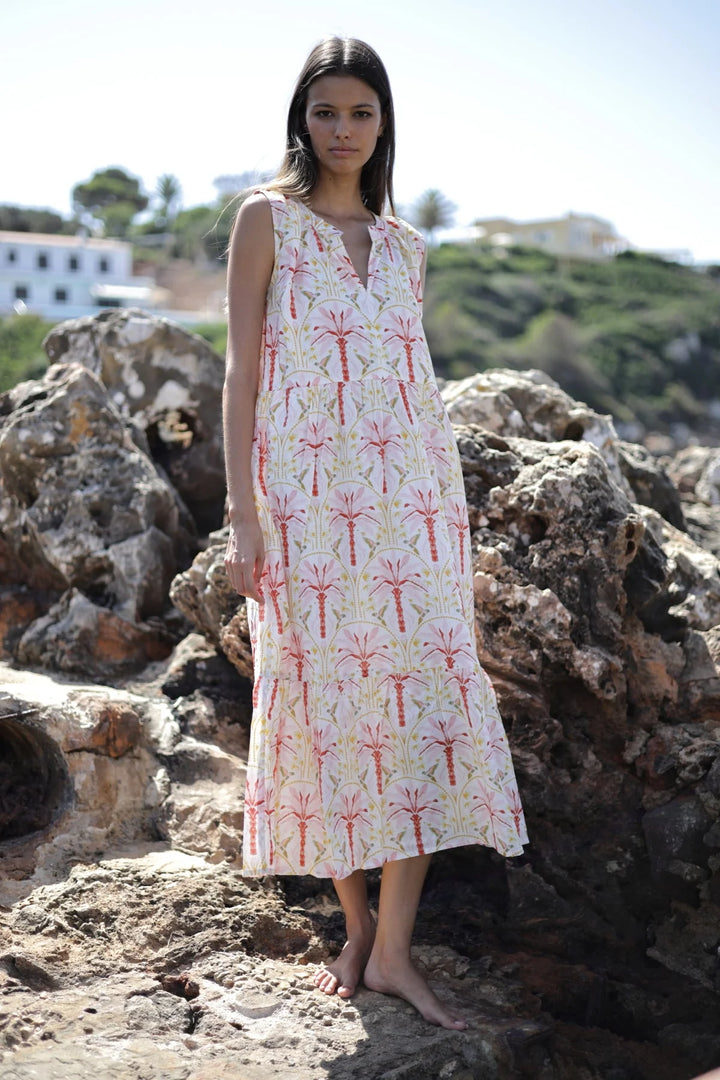 Dieses lange Kleid Benedetta ist eine ausgezeichnete Wahl für den Sommer. Hergestellt aus reinem Baumwolle, ist es leicht und bequem, perfekt für warme Tage. Der ärmellose Schnitt und der Tropfen-Ausschnitt machen es elegant und modern. Das fantasie macht es modisch und geeignet für verschiedene Anlässe.