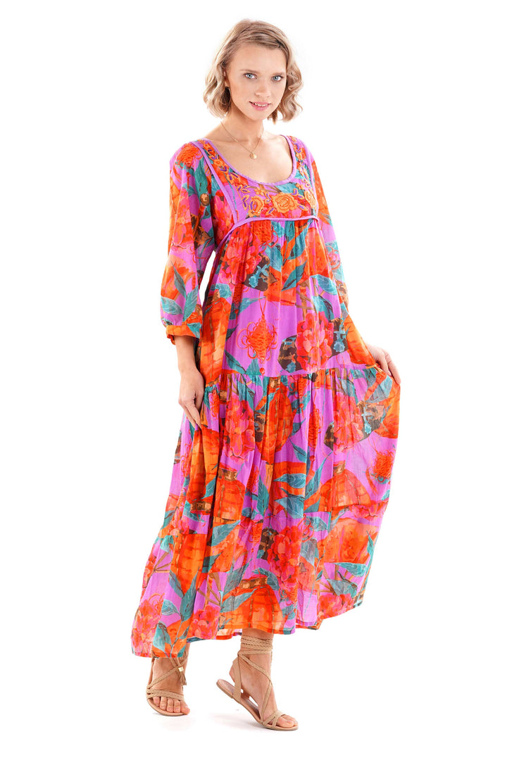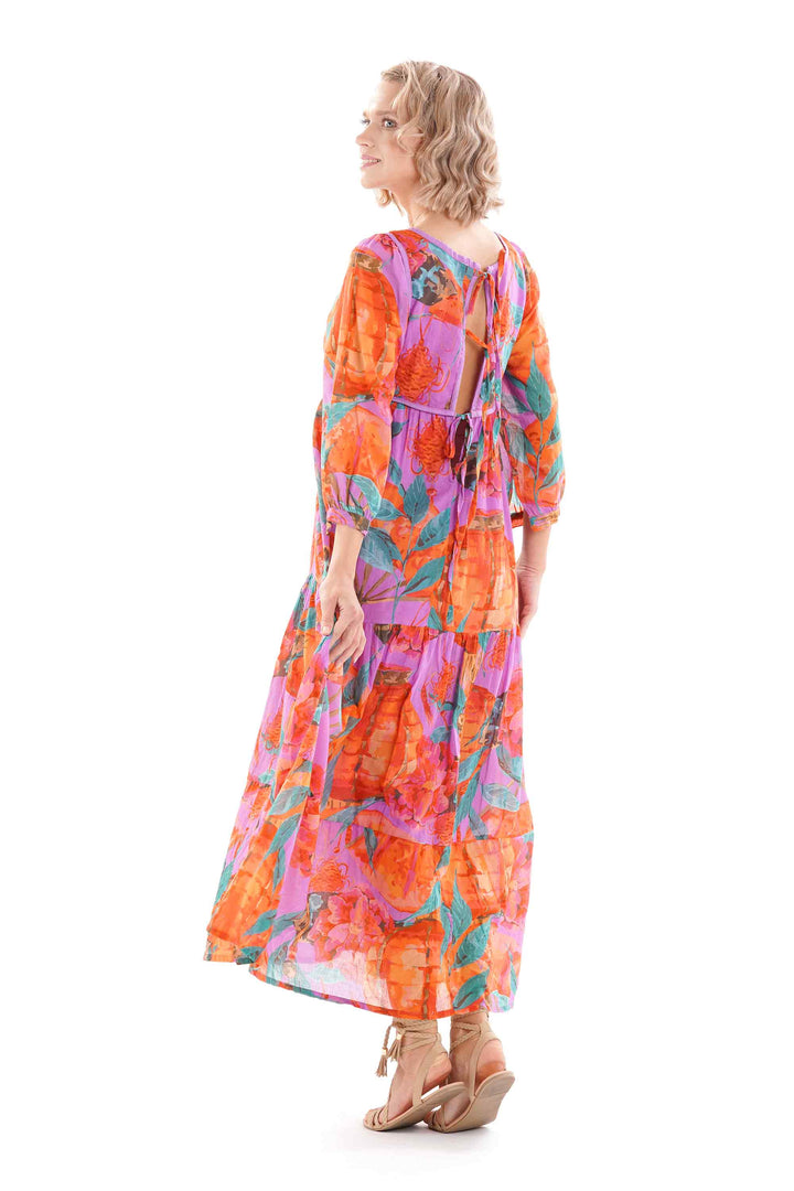 Dieses lange Kleid aus reinem Baumwolle vereint Komfort und Eleganz. Es ist durch eine raffinierte florale fantasie gekennzeichnet und verfügt über einen verstellbaren Schnürungsausschnitt auf der Rückseite, der es ermöglicht, die Passform nach den eigenen Vorlieben anzupassen. Der Stoff garantiert optimale Atmungsaktivität und Weichheit auf der Haut, was es ideal für Sommertage macht. Ein vielseitiges Kleidungsstück, das sich perfekt für legere und halbformelle Anlässe eignet.