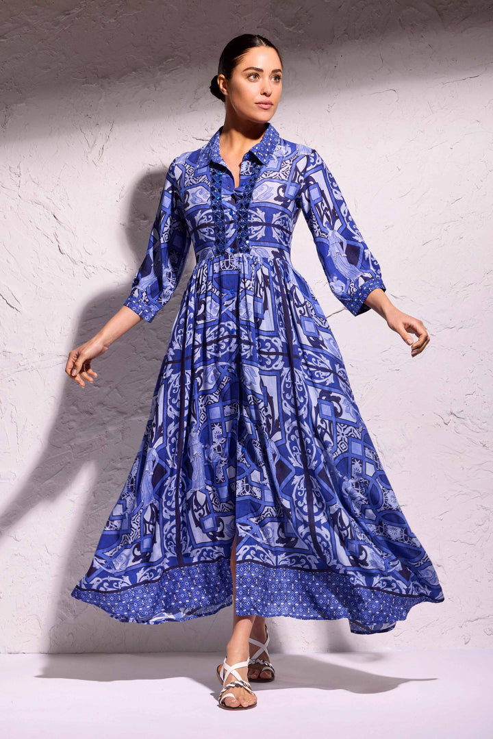 L'anges Kleid Irina aus mehrfarbiger Viskose bietet Komfort und Eleganz für die Sommertage. Mit 3/4-Ärmeln, Kragen und Knöpfen vorne, macht das leichte und vielseitige Design dieses Kleid perfekt für jeden Anlass. Es garantiert Frische und einen eleganten Look.