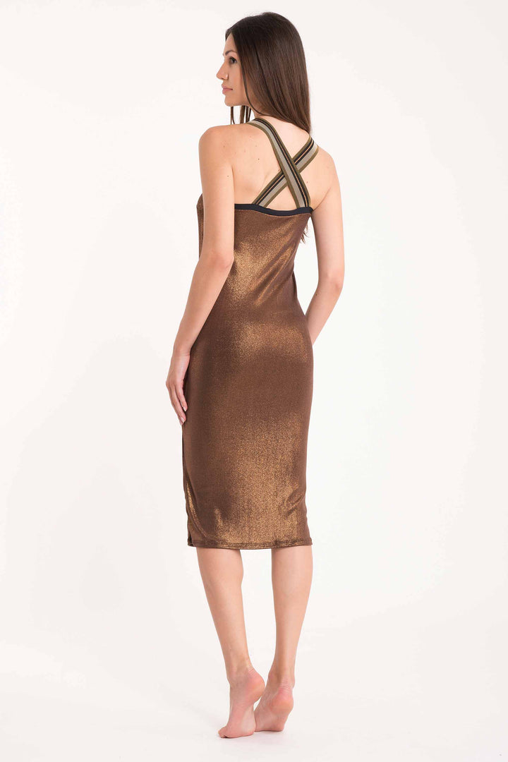 Dieses lange Kleid präsentiert eine klassische Bleistift-Silhouette, die geschickt entworfen wurde, um eine elegante und schlanke Passform zu bieten. Ideal für Anlässe, die einen raffinierten Stil erfordern, betont seine zeitlose Form die natürliche Figur mit Präzision und Raffinesse.
