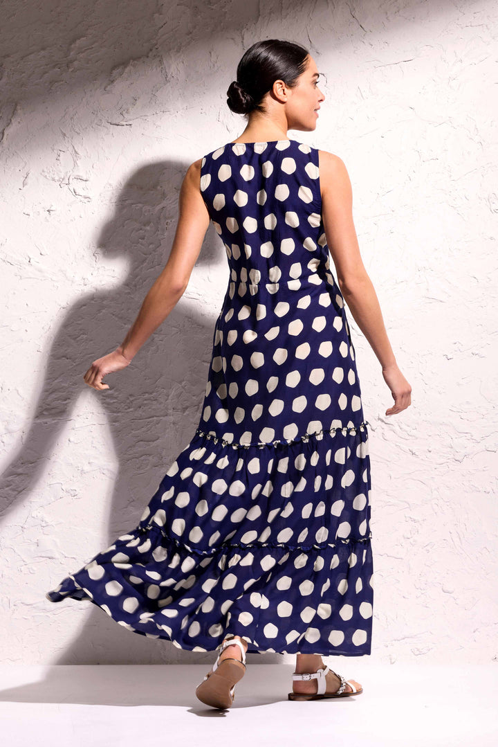 ÄRMELLOSES LANGES KLEID MIT PUNKTEN ELDA