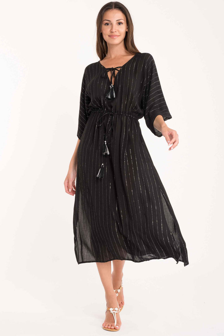 Das lange Kleid Valery, gekennzeichnet durch verstellbare Bänder mit raffinierten Quasten am Oberteil und an der leben, ermöglicht eine personalisierte Passform, die sich perfekt an Ihren Körper anpasst. Die großzügigen seitlichen Schlitze garantieren Bewegungsfreiheit ohne stilistische Kompromisse und schaffen eine fließende und raffinierte Silhouette. Ein vielseitiges Kleidungsstück, das mühelos vom Strand zu Abendveranstaltungen übergeht und den lässigen Luxus der Amalfiküste verkörpert.