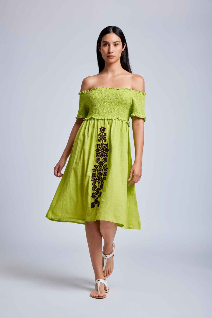 FLORA LIME BOOT-AUSSCHNITT-KLEID