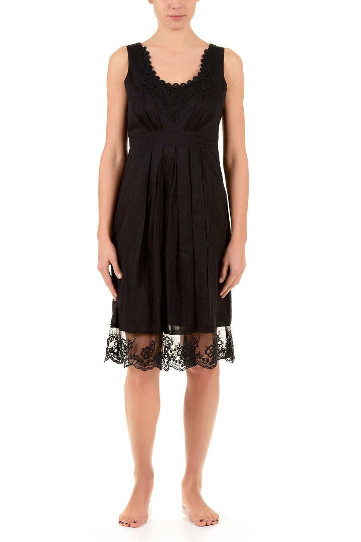 Dieses ärmellose Kleid aus reiner Baumwolle bietet idealen Komfort und Atmungsaktivität für warme Tage. Die Spitzeneinsätze am Saum verleihen einen Hauch von Eleganz und Raffinesse, wodurch es sowohl für legere als auch für anspruchsvollere Anlässe perfekt ist. Ein vielseitiges Kleidungsstück, das Stil und Praktikabilität mit hochwertiger Verarbeitung verbindet.