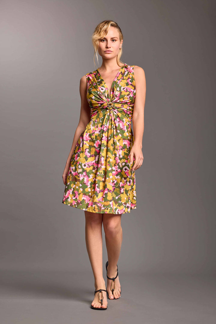 LDas ärmellose Kleid Emily ist die perfekte Kombination aus Eleganz und Komfort dank seines Lycra und des Camouflage-Drucks. Das figurbetonte Design und die Midi-Länge machen es ideal für Sommerveranstaltungen oder legere Abende, während der V-Ausschnitt einen Hauch von schlichter Raffinesse verleiht.