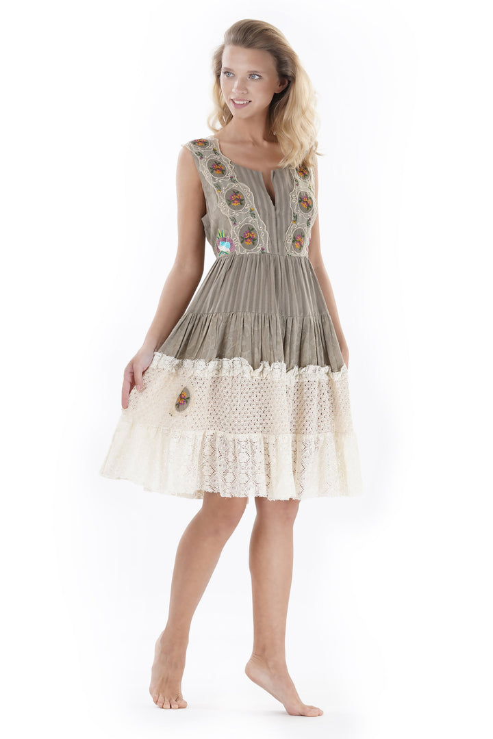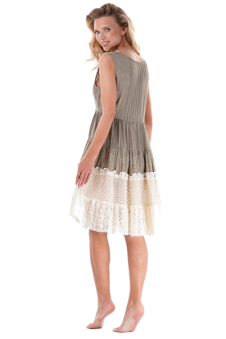 Dieses ärmellose Kleid verfügt über einen weiten Rock mit balzen aus leichtem Leinen, der Atmungsaktivität und Komfort gewährleistet. Zarte Spitzenstickereien fügen eine raffinierte Textur und ein elegantes Detail hinzu, was es zu einer anspruchsvollen Wahl für sommerliche Anlässe macht. Die Kombination aus Naturstoff und dezenten Verzierungen spiegelt eine fachkundige Schneiderei wider, die sowohl Stil als auch Praktikabilität berücksichtigt.