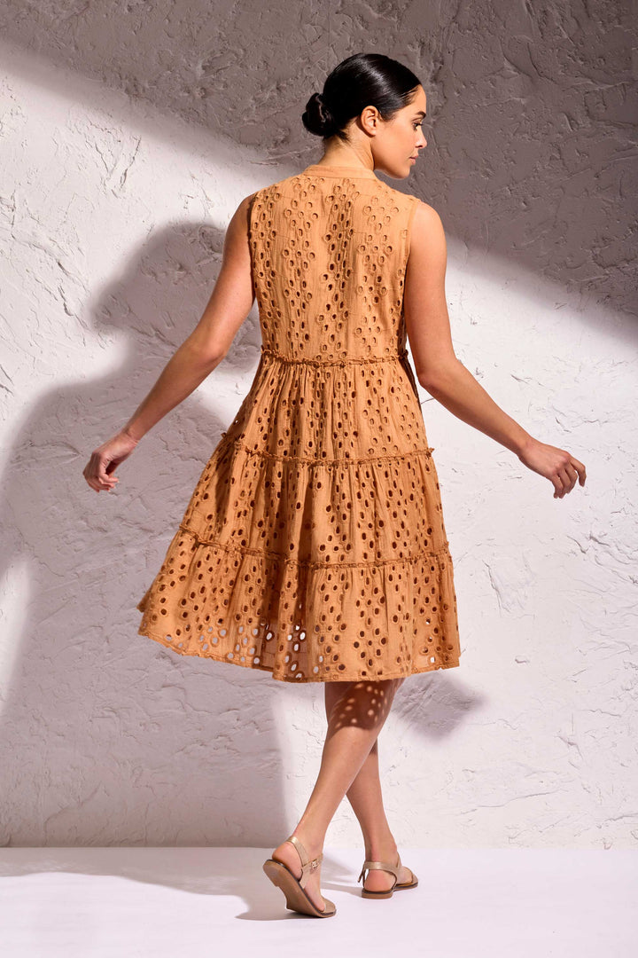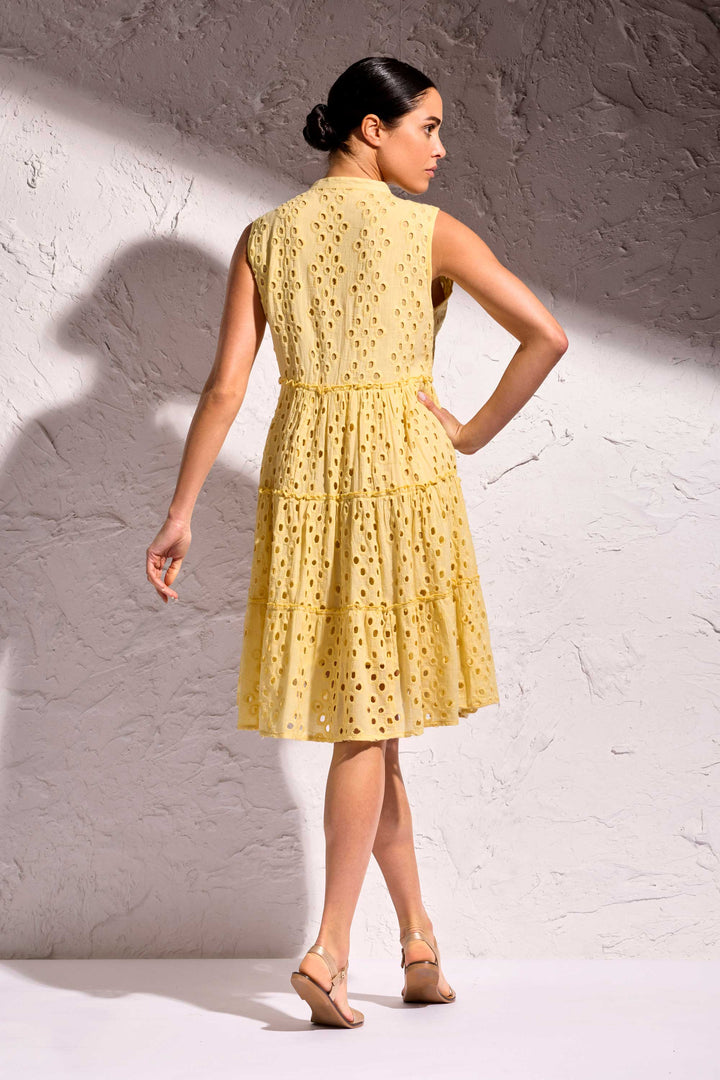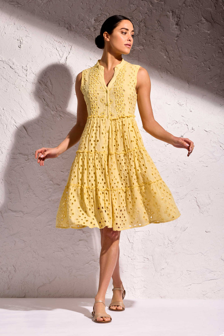 Las Kleid Clori bietet dir Frische und Stil dank seiner leichten Spitzenstruktur. Perfekt für die warmen Sommertage, verleihen sein V-Ausschnitt und die balzen deinem Look einen Hauch von Eleganz und Lässigkeit. Hergestellt aus Baumwolle für ein Gefühl von Leichtigkeit und Frische.