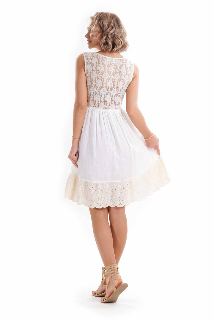 ÄRMELLOSES KLEID AUS SPITZENSTOFF SANGALLO