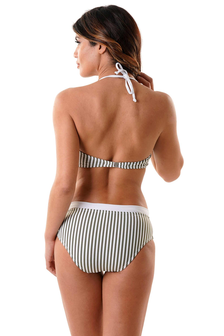 Dieser Bikini verfügt über ein elegantes Bandeau-Design mit Nackenband für verstellbaren Komfort und Halt. Das klassische Streifenmuster verleiht einen zeitlosen Touch, perfekt für einen schicken Look am Meer oder im Schwimmbad. Die Schleifenverschluss am Nacken sorgt für eine schmeichelhafte Passform und verbindet Eleganz mit Praktikabilität.
