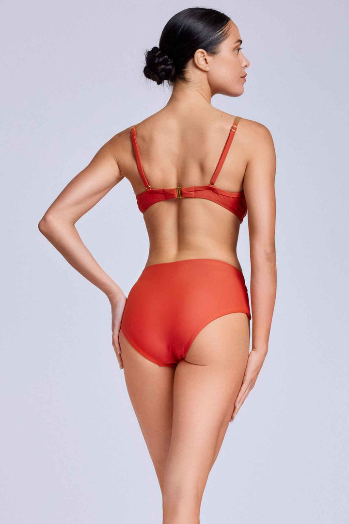 Dieser Bikini mit hohem leben und vorgeformten Cups bietet eine schmeichelhafte Silhouette kombiniert mit einem eleganten Design. Der Slip ist mit einem raffinierten Schmuckdetail veredelt, das einen Hauch von Raffinesse hinzufügt, während die verstellbaren schulterpolster eine perfekte und bequeme Passform gewährleisten. Ideal für alle, die Stil mit anspruchsvollem Komfort suchen.