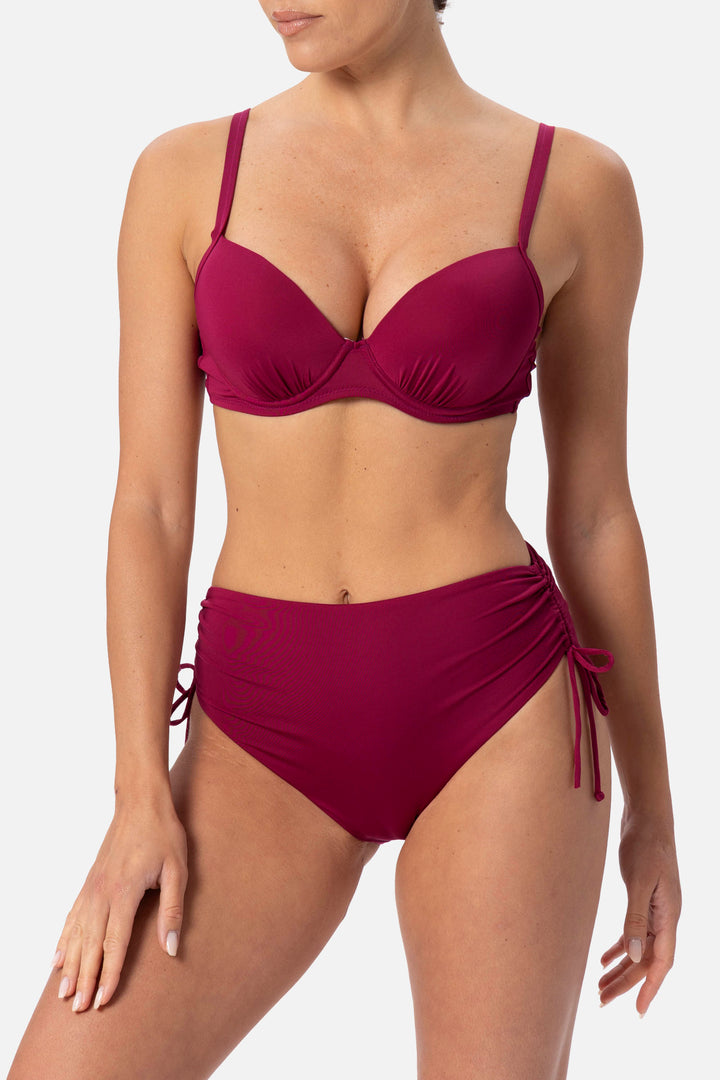 Il bikini Yasmin con ferretto e coulisse laterali offre una vestibilità perfetta e comfort ottimale grazie alle coppe fisse e alle spalline regolabili. Ideale per chi desidera un look moderno e chic sulla spiaggia.