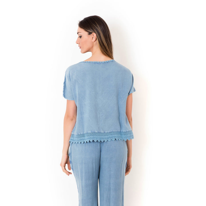 Diese elegante Bluse verfügt über einen V-Ausschnitt und zarte Stickereidetails, die Raffinesse mit subtiler Kunst verbinden. Perfekt, um sowohl legere als auch formelle Looks aufzuwerten, bietet sie eine raffinierte Note, die deine Garderobe mit zeitlosem Stil und fachmännischem handwerklichem Können bereichert.