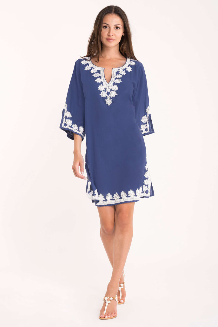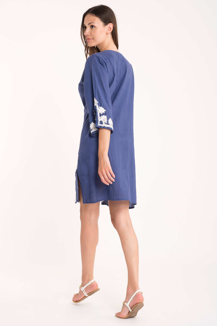 Der Kaftan aus reinem Baumwollstoff Chiara ist ideal für sommerliche Tage am Meer. Der Baumwollstoff garantiert Atmungsaktivität und Komfort, während die seitlichen Schlitze Bewegungsfreiheit sicherstellen. Ein vielseitiges Kleidungsstück, das mühelos vom Strand in die Stadt übergeht, perfekt für alle, die Eleganz ohne Kompromisse bei der Praktikabilität suchen.