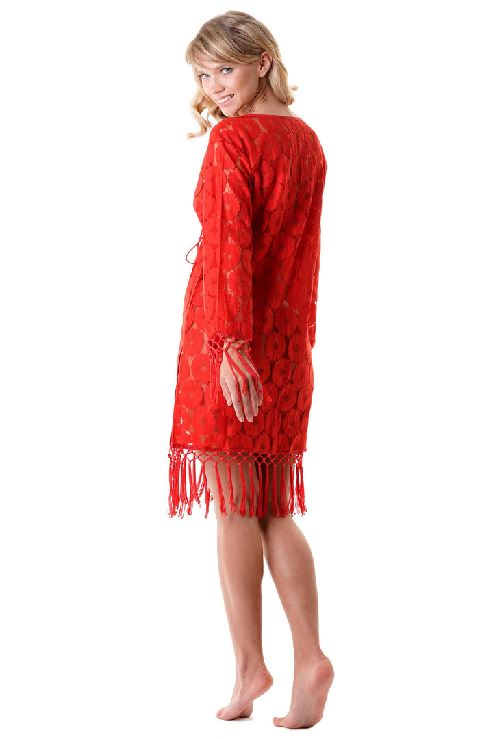 Dieser elegante Kaftan verfügt über einen tiefen V-Ausschnitt, der seine raffinierte Silhouette betont. Zarte Blumenstickereien verleihen einen edlen Touch, während Fransen am Saum und an den Ärmeln für eine sanfte Bewegung und Textur sorgen. Perfekt als eleganter Strandüberwurf oder als lässiges Sommeroutfit.