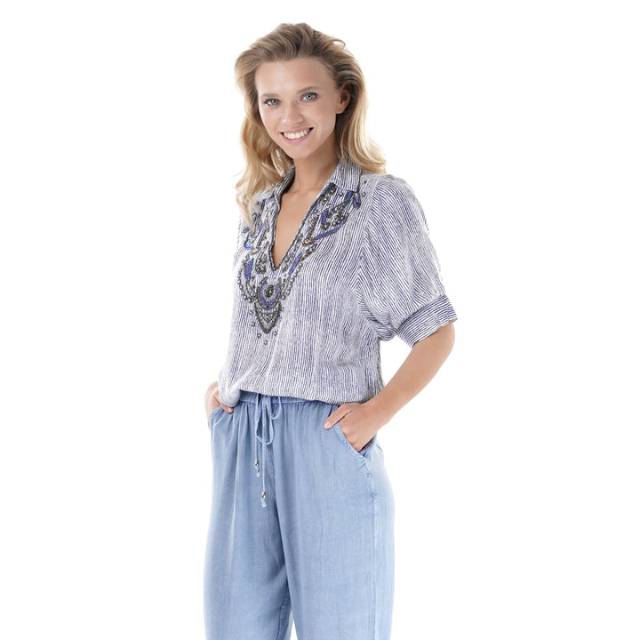 GESTREIFTES HEMD MIT PERLEN