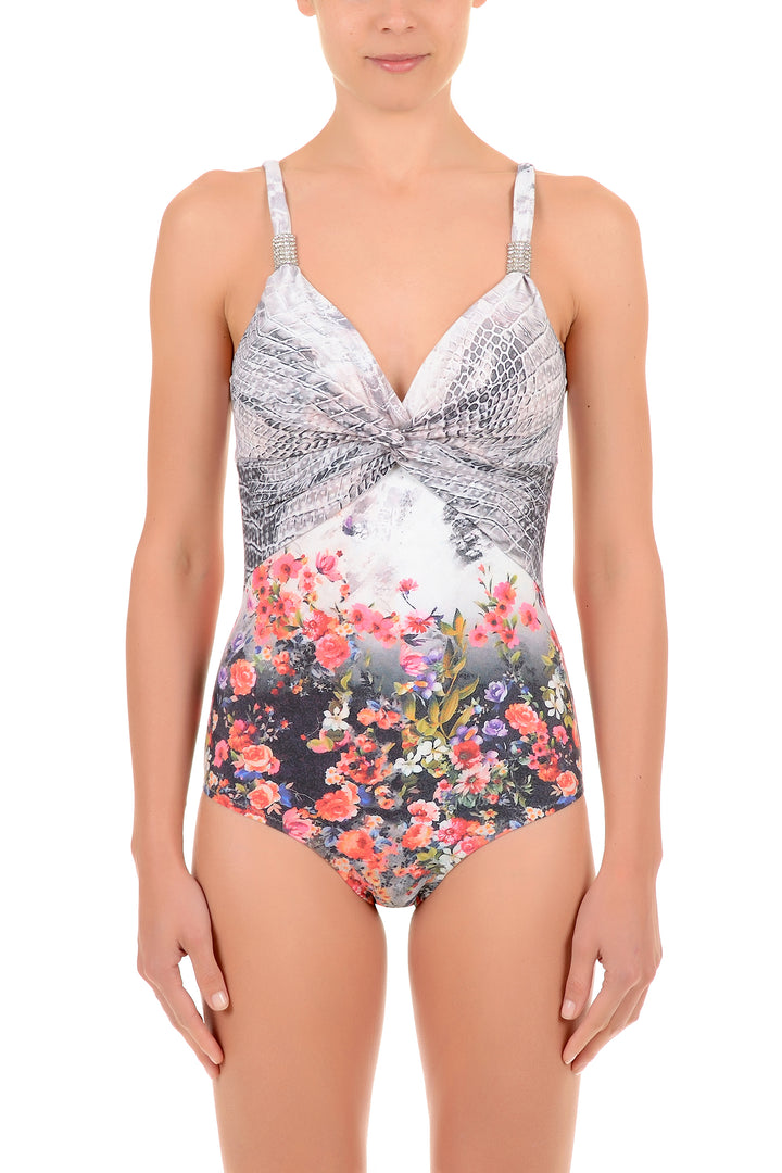 Dieser gemusterte Badeanzug ist ideal für alle, die Eleganz und Komfort in einem suchen. Die figurbetonte Passform betont die Figur, während das gemusterte Design Ihrem Strandlook einen Hauch von Originalität verleiht. Die hochwertigen Materialien garantieren Langlebigkeit und ein angenehmes Tragegefühl auf der Haut. Perfekt für alle, die ein vielseitiges Kleidungsstück suchen, das sowohl für den Pool als auch für den Strand geeignet ist.