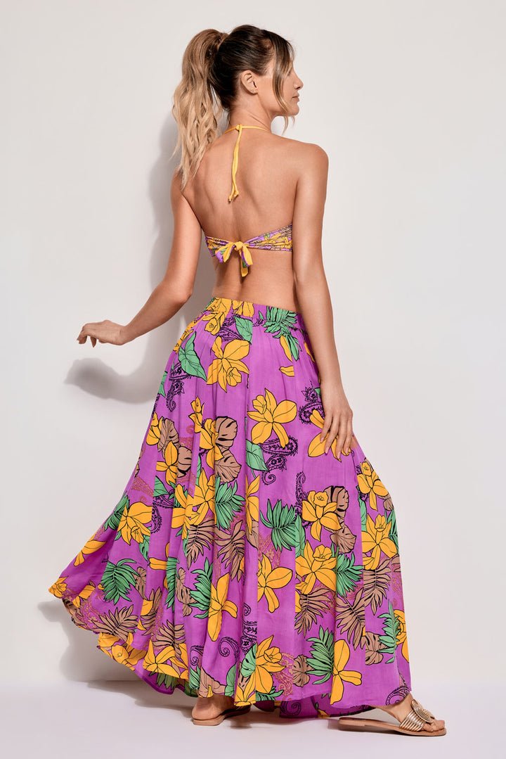 Verleihen Sie Ihrem Look mit dem langen Blumenrock einen Hauch von Eleganz und Frische! Das lange Modell verleiht Ihnen einen raffinierten Look, während der elastische vita für eine bequeme Passform sorgt, die für alle Größen geeignet ist. Das fantasia verleiht Ihrem Outfit einen Hauch von Natur und Farbe. Entdecken Sie es jetzt!