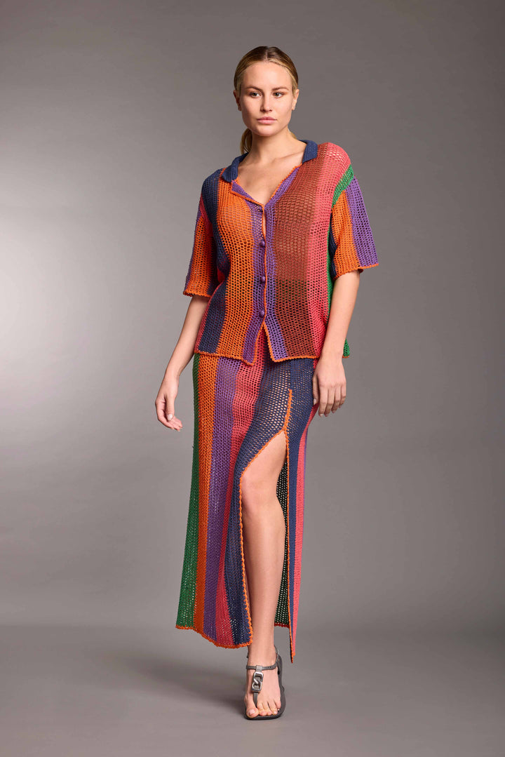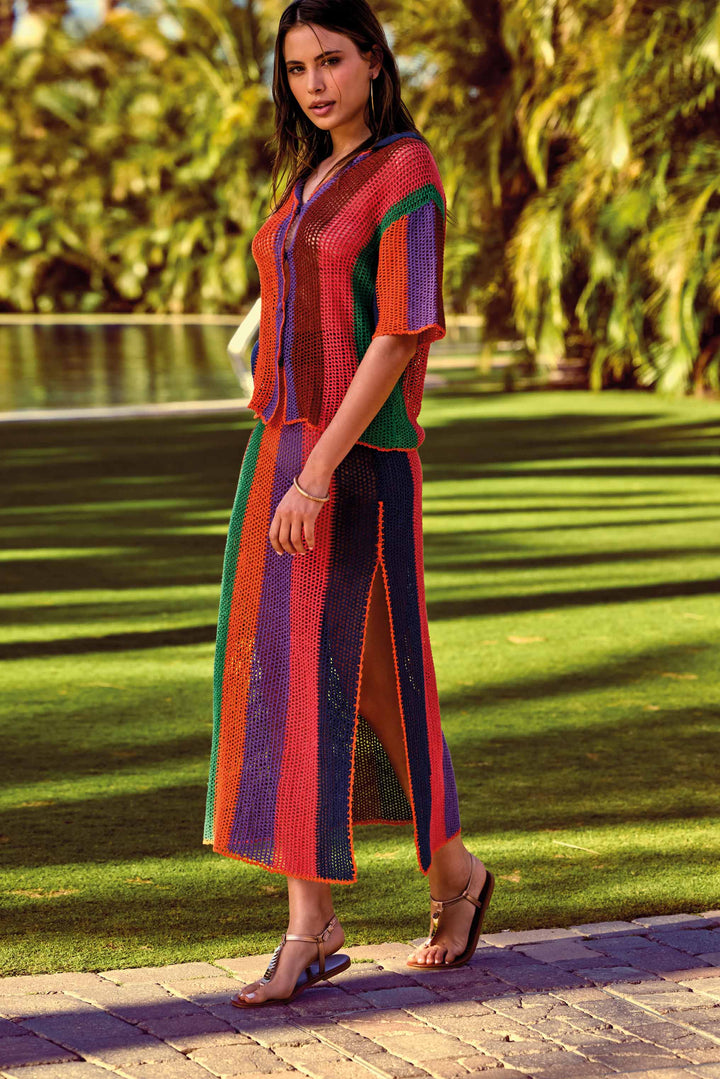 Der lange Rock Silvia ist perfekt für deine Sommeroutfits dank des leichten Stoffes und des lebhaften, mehrfarbigen Designs. Mit dem seitlichen Schlitz und seiner Maxilänge bietet er sowohl einen lässigen als auch eleganten Stil. Hergestellt aus weicher Baumwolle, garantiert er Komfort und einen einzigartigen Stil.