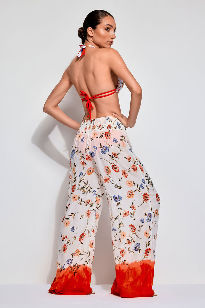 Palazzo-Hosen, mit weitem und fließendem Design, ideal für maximalen Komfort und Frische. Das fantasie Muster in lebhaften Farben verleiht einen Hauch von Farbe und Weiblichkeit und macht sie perfekt für die Sommersaison. Ein vielseitiges Kleidungsstück, ideal für lässige und elegante Looks.