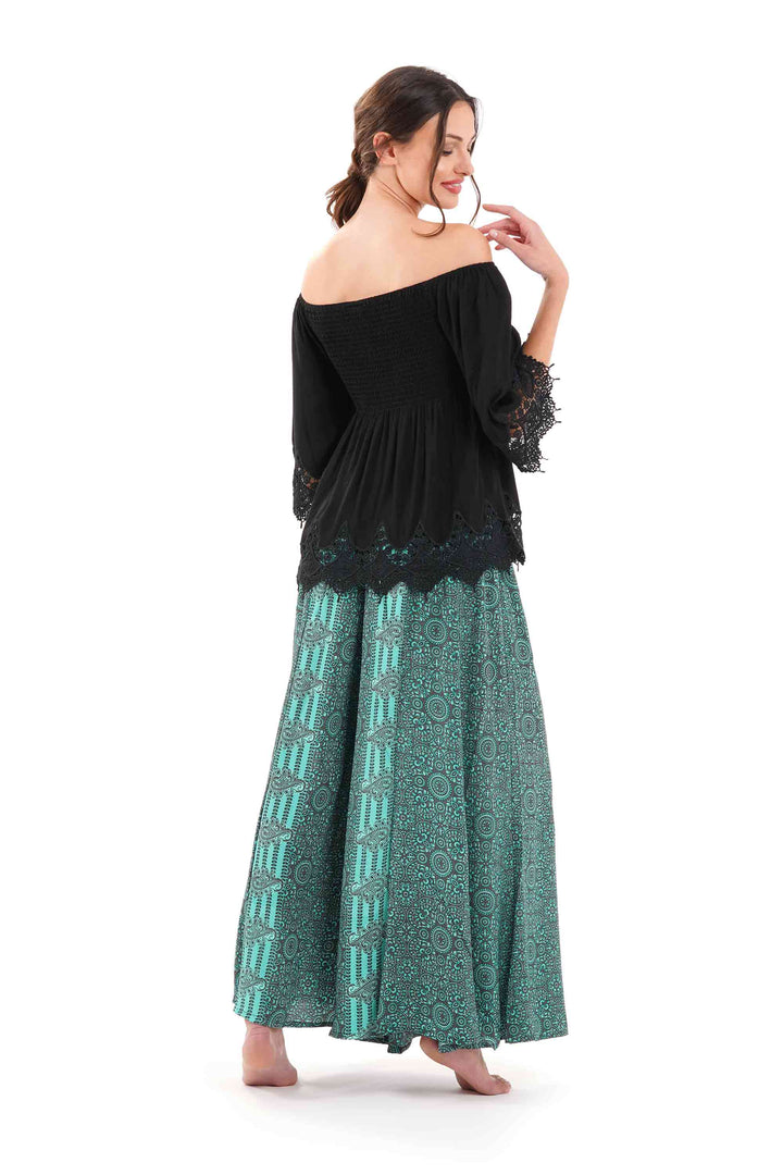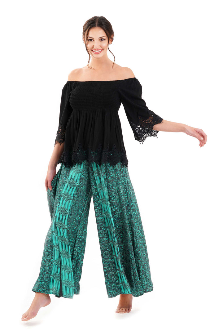 Diese langen Hosen mit weitem und bequemem Bein zeichnen sich durch eine raffinierte ethnische fantasie aus, die die Essenz des Bohemien-Stils einfängt. Der großzügige Schnitt garantiert Bewegungsfreiheit, perfekt für diejenigen, die ein vielseitiges Kleidungsstück suchen, das Komfort und Persönlichkeit vereint. Ideal, um sowohl in lässigen als auch in anspruchsvolleren Kontexten elegante Looks zu kreieren, stellen diese Hosen eine bewusste Stil-Investition für die zeitgenössische Garderobe dar.