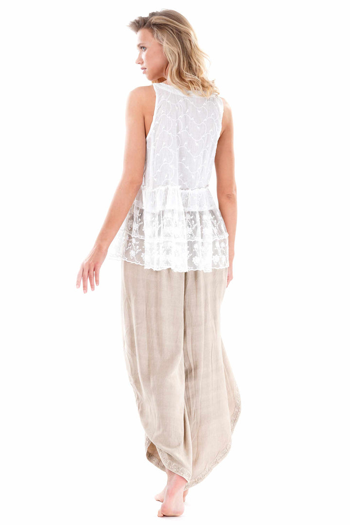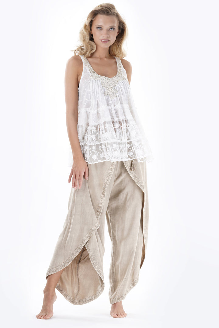 Diese Hose zeichnet sich durch einen raffinierten V-Schnitt aus, der die Silhouette elegant betont. Verziert mit zarten Stickereien bieten sie eine unverwechselbare Note, ohne auf Komfort zu verzichten. Perfekt für alle, die ein vielseitiges und detailverliebtes Kleidungsstück suchen.