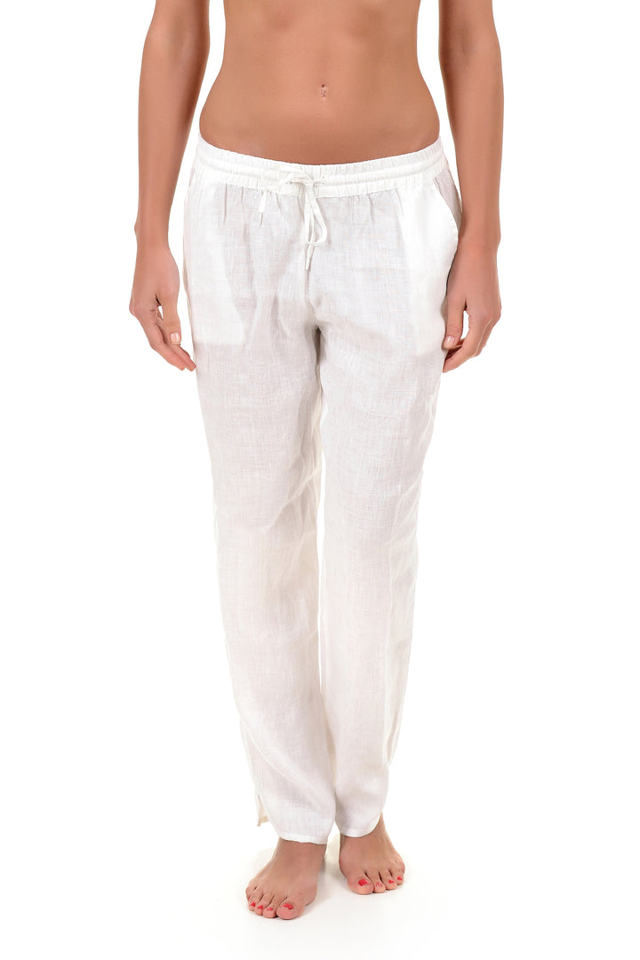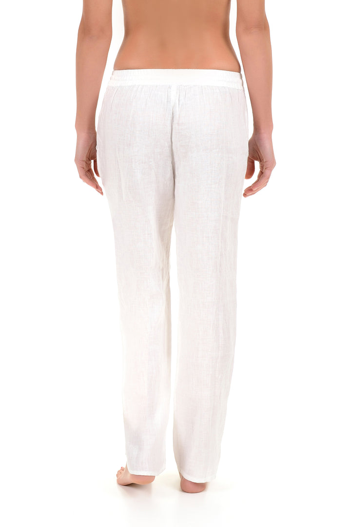 Hergestellt aus atmungsaktivem Leinen, verfügen diese weißen Hosen über einen bequemen elastischen Bund in leben für eine sichere, aber flexible Passform. Das zeitlose Design und der leichte Stoff machen sie zu einer ausgezeichneten Wahl für warme Klimazonen und bieten Stil und Komfort dank makelloser Schneiderkunst.