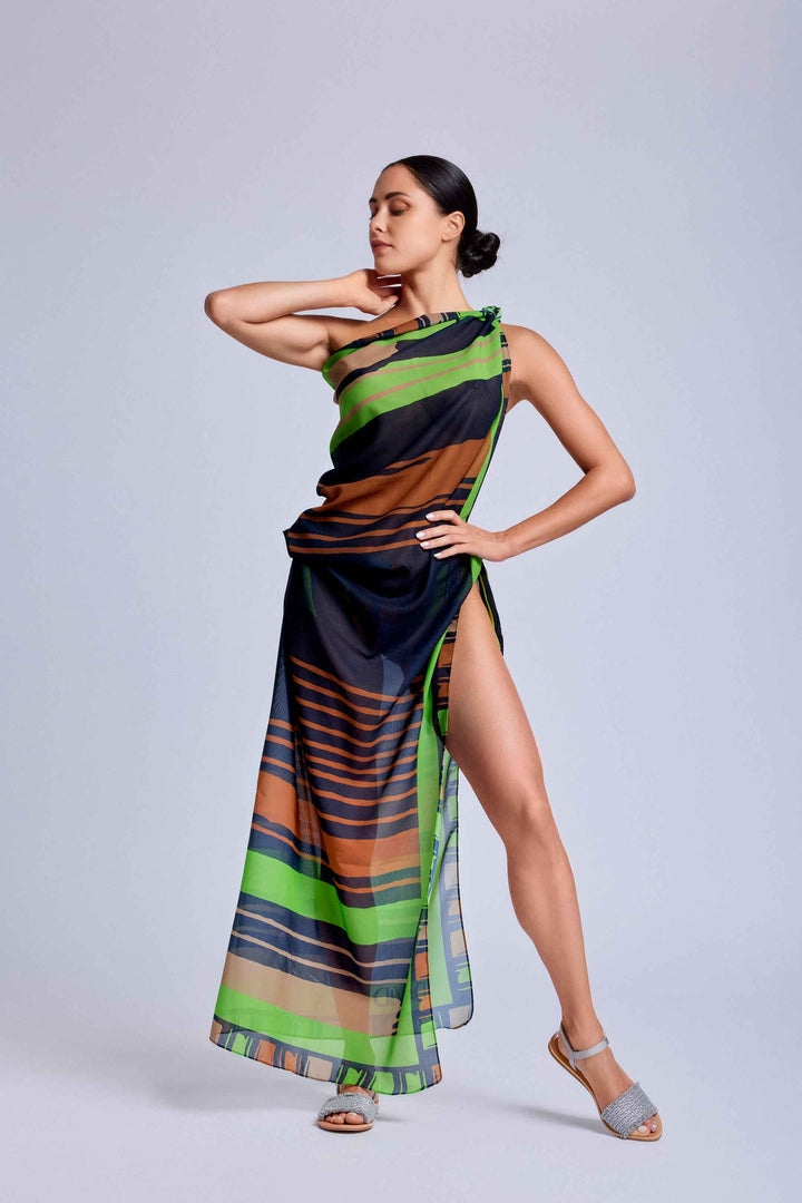 Erlebe Eleganz und Farbe mit unserem Pareo Foulard Arti. Hergestellt aus einem lebhaften, mehrfarbigen Druck, wirst du an jedem Strand auffallen. Die großzügige Größe ermöglicht es dir, es als Pareo, Schal oder Strandkleid zu tragen und sorgt immer für einen ansprechenden Look. Lass dich nicht übersehen, wähle das Pareo Foulard Arti!