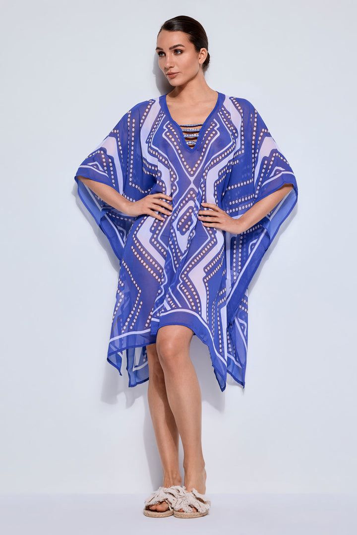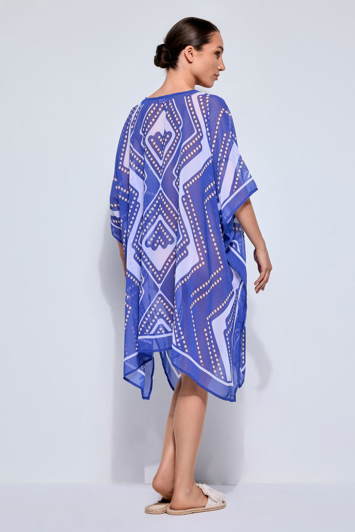 Geometrischer Poncho, perfekt als Strandüberwurf, bietet dieser Poncho aus Georgette-Stoff eine bequeme und leichte Passform. Das fantasie verleiht deinem Look einen Hauch von Originalität und macht ihn ideal für deine Sommertage am Strand.