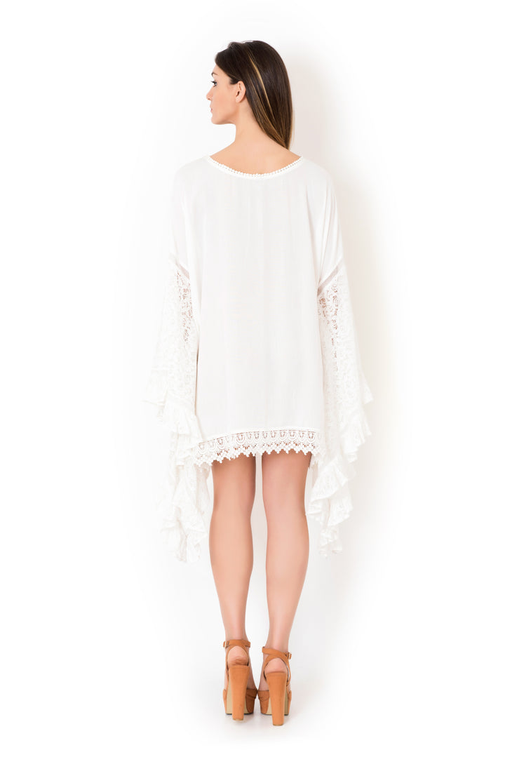Dieser elegante weiße Poncho verfügt über lange Fledermausärmel und aufwendige Spitzenstickereien, die Komfort und raffinierte Details vereinen. Sein fließendes Design bietet Bewegungsfreiheit, während die zarte Spitze eine feine Textur hinzufügt, wodurch er ein vielseitiges Kleidungsstück für sowohl legere als auch formelle Anlässe ist. Perfekt zum Schichten, bereichert er deine Garderobe mit einem Hauch zeitloser Eleganz.