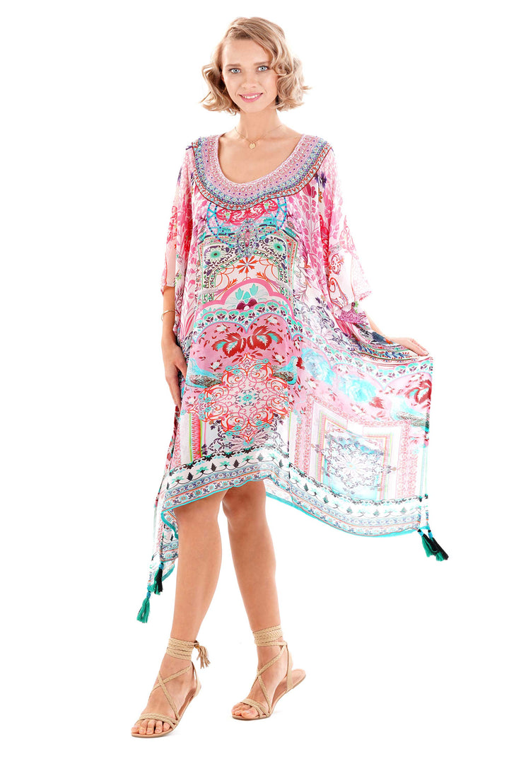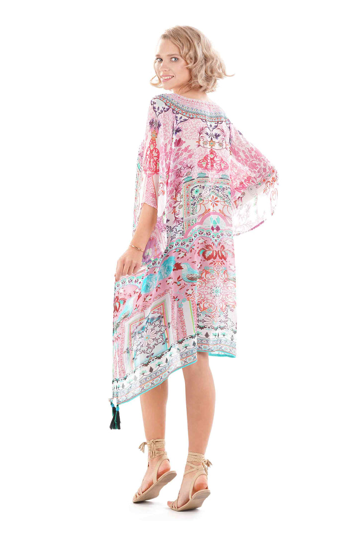 Dieser Poncho mit Rundhalsausschnitt betont das Dekolleté. Die charakteristischen seitlichen Schlitze, verziert mit handgefertigten Quasten, garantieren Bewegungsfreiheit und mühelose Eleganz. Ein vielseitiges Kleidungsstück, das sich perfekt sowohl für legere Looks als auch für raffiniertere Kombinationen eignet, ideal für saisonale Übergänge.