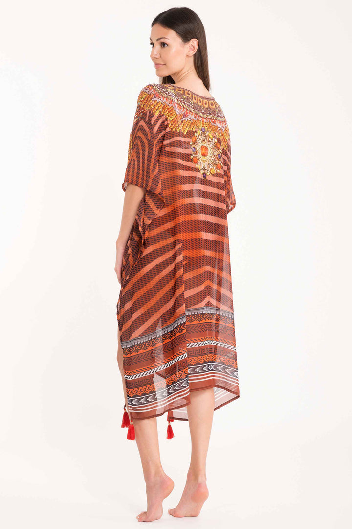 Dieser vielseitige Poncho mit V-Ausschnitt betont das Dekolleté und verleiht eine raffinierte Eleganz. Die charakteristischen seitlichen Schlitze, verziert mit Quasten, verleihen dem Kleidungsstück Bewegung und einen Hauch von Boho-Stil. Ideal für Saisonübergänge, lässt er sich leicht über jedes Outfit tragen und sorgt für einen eleganten und zeitgemäßen Look. Ein unverzichtbares Kleidungsstück, das Komfort und Stil ohne Kompromisse verbindet.