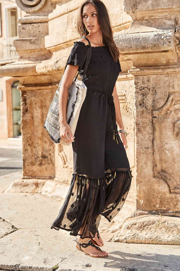 Dieses elegante Top mit U-Boot-Ausschnitt umrahmt sanft die Schultern, perfekt für einen raffinierten und vielseitigen Look. Der elastische Bund sorgt für eine bequeme und anliegende Passform. Ein essentielles Kleidungsstück mit klarer Linie, ideal, um sowohl lässige als auch formellere Outfits zu kreieren.