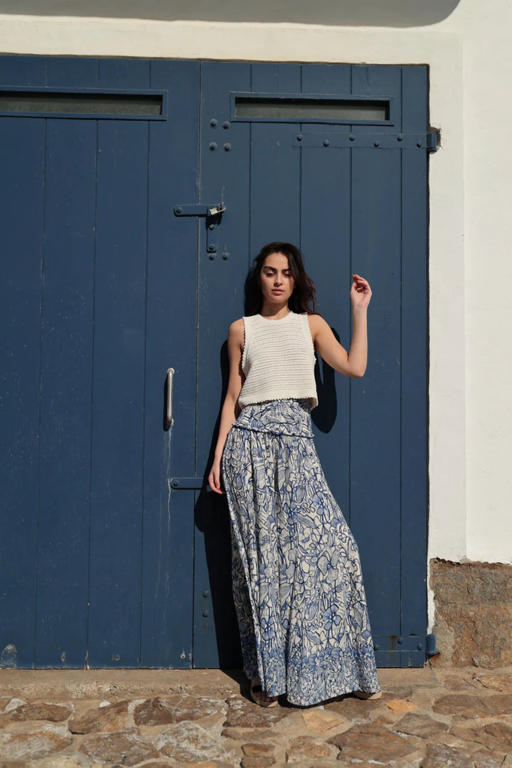 Ärmellos, ist es mit natürlichen Crochet-Kanten veredelt, die sorgfältig am Ausschnitt gearbeitet sind.