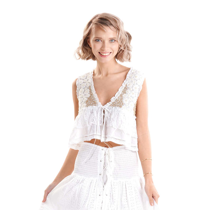 Dieses elegante ärmellose Top aus reiner Baumwolle ist ideal für die warmen Sommertage. Der verstellbare Riemen ermöglicht es, die Passform nach deinen Vorlieben anzupassen und sorgt für Komfort und Bewegungsfreiheit. Ein vielseitiges und raffiniertes Kleidungsstück, perfekt zum Tragen am Strand oder in der Stadt für einen lässig-chicen Stil.